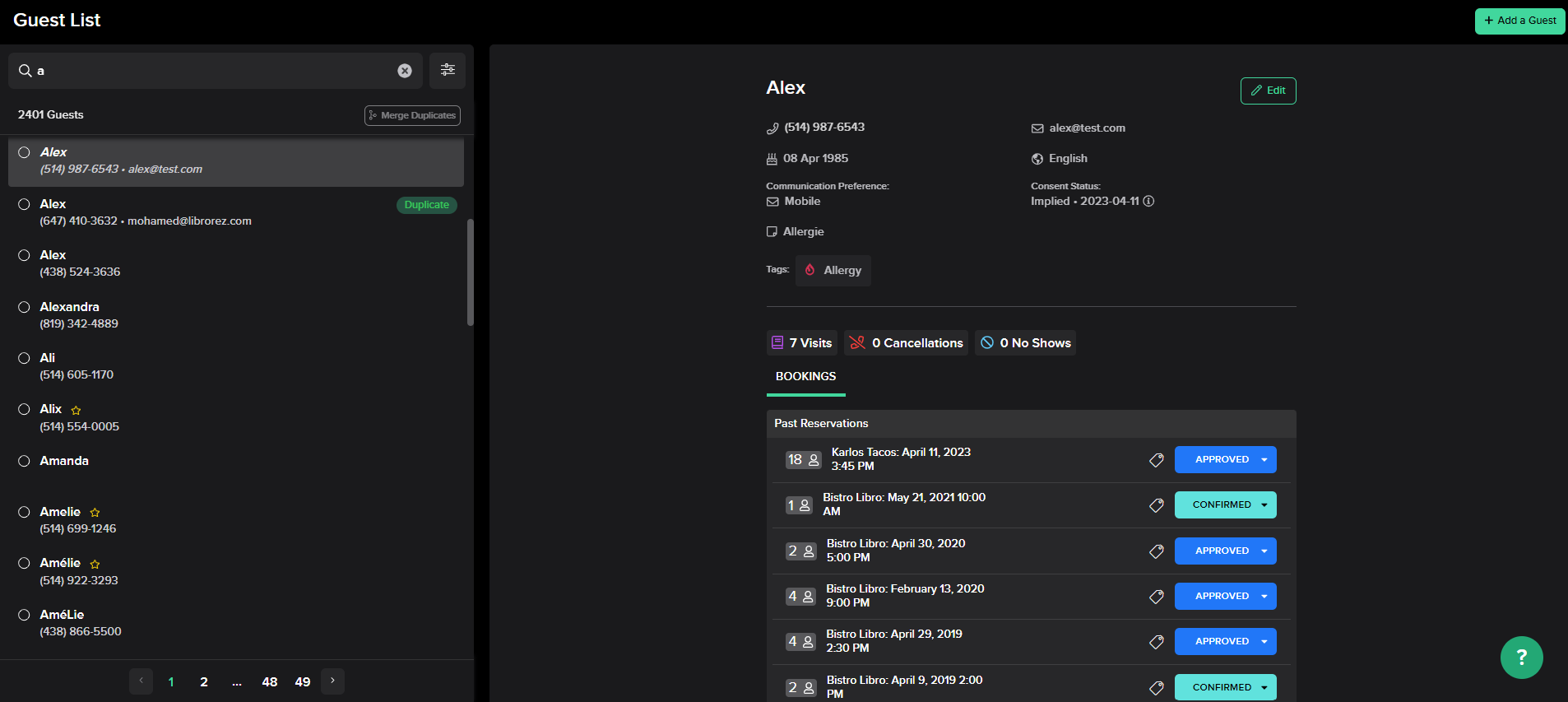 Enhanced functionality of the guest list, designed to facilitate your experience by simplifying viewing, adding, and editing client files. You can now merge duplicate guests in your guest list, helping you maintain clean and organized data.